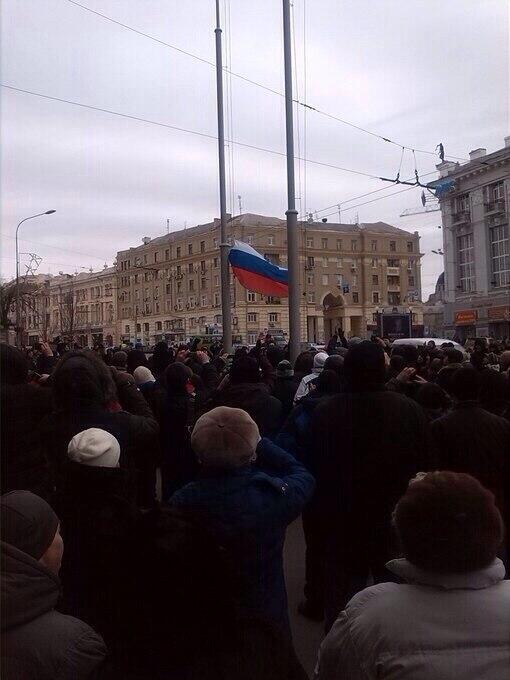 Feb. 26th, 2014 02:44 pmВ Харькове ситуация выходит из-под контроля местной власти. Люди, устав ждать выполнения обещаний от местного мэра Кернеса, который еще неделю назад рвался на баррикады давать отпор бандитам и бандеровцам, а сейчас активно сливающий протест против наступления нацизма, водрузили флаг России над зданием горсовета, сорвав флаг Евросоюза.